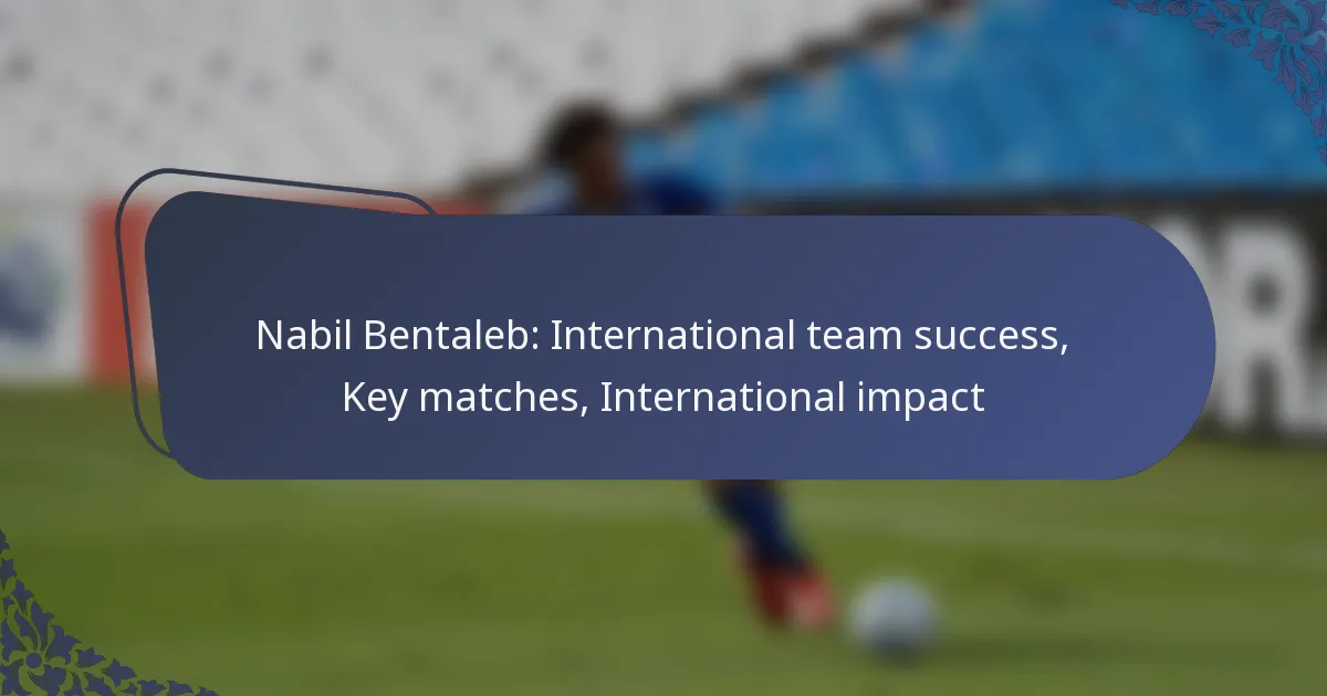 Nabil Bentaleb has made significant contributions to international football through his dynamic playing style, tactical awareness, and leadership qualities. His performances in key matches have not only showcased his skills but also positively influenced team dynamics and reputation among fans and players.